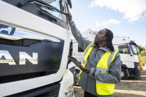 “Before setting off on a shift, HGV drivers must complete a daily walk-around vehicle check,” says John. “It covers tyres, lights, mirrors and other key components. It’s a legal requirement. The Driver & Vehicle Standards Agency (DVSA) recommends the check should take about 15 minutes to complete. It could be the difference between a safe journey and a serious incident. That’s why the walk-around check is an important topic in our Driver Certificate of Professional Competence (Driver CPC)  training programmes. To support this, we’ve also produced a ‘Daily Walk Around Check’ poster.”